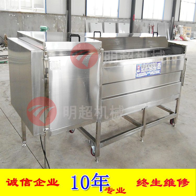 土豆清洗去皮機(jī)是諸城市晨熙機(jī)械科技有限公司自主研發(fā)的一種清洗去皮機(jī),主要針對(duì)根莖類的果蔬進(jìn)行去皮去皮一體機(jī)或者簡(jiǎn)單的清洗,能有效去除表面的泥沙,去皮效果非常好,采用的是九根毛輥進(jìn)行清洗,毛輥上面的采用的是廠家生產(chǎn)的食品級(jí)尼龍毛刷,可根據(jù)用戶的需求定制,比如客戶想清洗土豆并去皮處理,可以選擇硬度比較高的毛刷,如果是簡(jiǎn)單的清洗掉表面的泥沙,不需要去皮,可以選擇比較軟一點(diǎn)的毛刷進(jìn)行清洗,清洗過程中設(shè)備可通過管道直接跟設(shè)備對(duì)接,兩根無縫不銹鋼管沖孔,每個(gè)孔上面根據(jù)物料的不同可加上食品級(jí)別的噴嘴,清洗后的土豆干凈,如果是老土豆,經(jīng)過長(zhǎng)時(shí)間在外面的風(fēng)干,表面的水分沒有了,皮對(duì)緊緊地鎖在一起,這種土豆清洗的過程中,時(shí)間要比新鮮的土豆要長(zhǎng)一些,那么清洗后的皮和泥沙都從哪里走了呢?泥沙和皮都隨著水流的沖擊,到了設(shè)備的底部,底部設(shè)有過濾網(wǎng),水經(jīng)過過濾網(wǎng)到達(dá)水槽,水槽的旁邊設(shè)有出口,出口可連接下水道,直接將臟水沖到下水道里面。