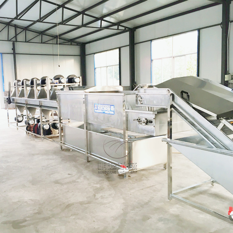 3、紅薯清洗機:通過浸泡的方式,將紅薯和紅薯表面的泥沙分離,這樣有效保護紅薯表面沒有傷痕,在通過鼓泡的方式將紅薯清洗一遍,再由網(wǎng)帶輸送到下一道工序,該機水可循環(huán)利用,操作簡單,整機采用sus304不銹鋼材質(zhì)制造,完全符合對食品衛(wèi)生的需求
