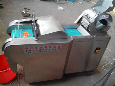 多功能蔬菜分切機將根莖類蔬菜(馬鈴薯、番薯、瓜類、竹筍、洋蔥、茄子以及葉菜類蔬菜(芹菜、大白菜、高麗菜、菠菜等蔬果類切成丁、片、絲條狀。適合中央廚房、工廠、校院食堂、食品廠等使用。